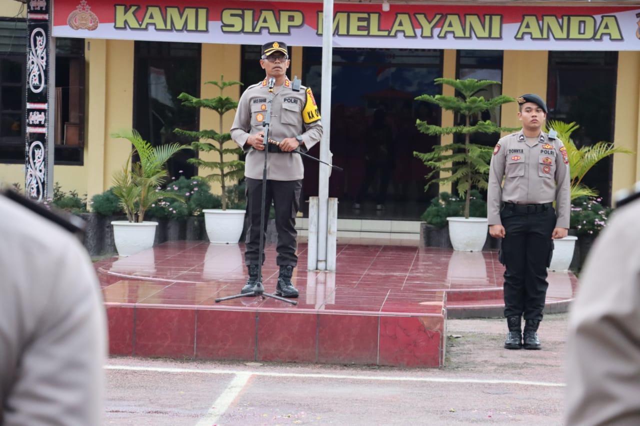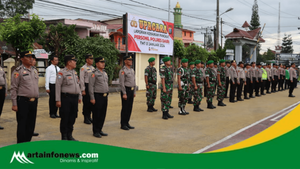 Dairi Sumut-artainfonews.com-Polres Dairi menggelar apel Operasi Lilin Toba bersama TNI dan Dinas Perhubungan dalam mengamankan Ibadah Gereja dan malam pergantian tahun baru 2024 di halaman Mapolres Dairi, Minggu (31/12/2023).