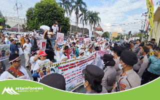 Pematangsiantar-artainfonews.com-Seratusan masyarakat yang tergabung dalam Aliansi Masyarakat Siantar melakukan aksi damai di depan Mapolres Pematangsiantar, Senin (23/6/25). Aksi ini bertajuk #SaveIPTU Tomi Marbun, menyuarakan tuntutan agar pengusutan terhadap hilangnya IPTU Tomi Samuel Marbun saat bertugas di Papua Barat dapat ditindaklanjuti secara serius oleh institusi Polri.