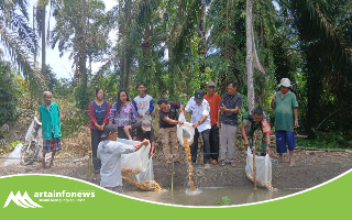 Simalungun-artainfonews.com-qDalam rangka mendukung program ketahanan pangan nasional, Babinsa Koramil 10/Tanah Jawa Kodim 0207/Simalungun, Serda Eko Romansyah, melaksanakan kegiatan pelepasan bibit ikan mas ke kolam milik BUMNag Bahalat Bayu di Huta Bah Biding I, Nagori Bahalat Bayu, Kecamatan Jawa Maraja Bah Jambi, Kabupaten Simalungun, pada Rabu (27/08) pukul 10.00 WIB.