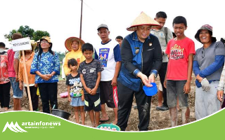 Bupati Vandiko Gultom berharap agar poktan penerima bantuan bibit Bawang Merah agar melakukan pertanaman dengan baik.
