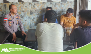 Tebing Tinggi Sumut-artainfonews.com-Mengantisipasi terjadinya kecelakaan lalulintas di tempat rawan, personel Bhabinkamtibmas Polsek Padang Hulu Polres Tebing Tinggi Aipda Lukman S. Pakpahan melaksanakan pemasangan spanduk/banner himbauan agar masyarakat berhati-hati saat melintas di perlintasan kereta api tanpa palang pintu yang berlangsung di Jalan Danau Singkarak dan Jalan Danau Meninjau Lingkungan 3 dan 4 Kelurahan Padang Merbau Kecamatan Padang Hulu Kota Tebing Tinggi, Sumatra Utara, Rabu (20/03/24).