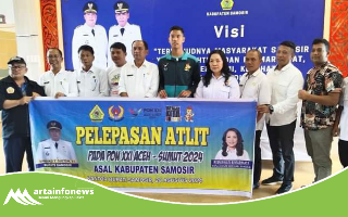 Samosir(Sumut)-artainfonews.com-Bupati Samosir diwakili Sekretaris Daerah Marudut Tua Sitinjak, melepas 3 orang atlet asal Kabupaten Samosir untuk berlaga pada Pekan Olahraga Nasional (PON) XXI Aceh-Sumut untuk mewakili Provinsi Sumatera Utara. Acara pelepasan dilaksanakan di Lobby Lantai II Kantor Bupati Samosir, Rabu (28/8).