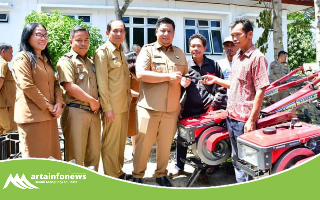 Samosir Sumut-artainfonews.com-Hasil sinergitas Pemkab Samosir dengan Kementerian Pertanian RI, Bupati Samosir Vandiko Timotius Gultom kembali menyerahkan bantuan alsintan pra panen kepada 15 kelompok tani, di Kompleks Kantor Dinas Ketapang dan Pertanian, Parbaba, 24/06.