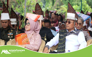 Simalungun(Sumut)-artainfonews.com-Bupati Simalungun, Anton Achmad Saragih didampingi Ketua TP PKK Ny Darmawati Anton Achmad Saragih menghadiri peresmian monumen Raja Sang Naualuh Damanik.