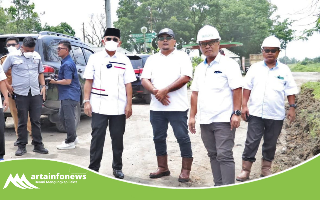 Simalungun(Sumut)-artainfonews.com-Bupati Simalungun, Anton Achmad Saragih meninjau kegiatan pengerasan jalan sepanjang 5 Km yang di kerjakan oleh pihak PTPN IV Regional II di wilayah Kecamatan Bandar Huluan, Simalungun, Sumut, Selasa (15/4/2025)