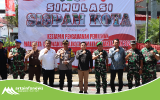 Pematangsiantar(Sumut)-artainfonews.com-Kapolres Pematangsiantar AKBP Yogen Heroes Baruno SH, SIK pimpin pelaksanaan Simulasi Sistem Pengamanan Kota (Sispamkota) Pemilihan Kepala Daerah (Pilkada) dalam rangka Operasi Mantap Praja Tahun 2024.