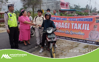 Simalungun Sumut-artainfonews.com-Kepolisian Tanah Jawa polres Simalungun beserta anggota Bhayangkari melakukan kegiatan berbagi takjil buka puasa, Rabu (19/3/2024).dimulai pukul 17.00 Wib.