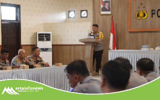 Simalungun(Sumut)-artainfonews.com-Kapolres Simalungun, AKBP Choky Sentosa Meliala memimpin Rapat Pimpinan (Rapim) Jajaran Polres Simalungun Tahun 2025 di Aula Andar Siahaan, Mako Polres Simalungun, Sumut, Senin (10//2025).