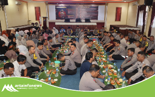 Pematangsiantar Sumut-artainfonewa.com-Kapolres Pematangsiantar AKBP Yogen Heroes Baruno SH, SIK bersama Pejabat utama (PJU) dan Bintara laksanakan punggahan dalam menyambut Bulan Suci Ramadhan 1445 H Tahun 2024, Jumat, (8/3/2024) sekira pukul 08.30 WIB.