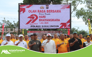 Simalungun-artainfonews.com-Dalam rangka untuk memeriahkan semanrak memperingati Hari Ulang Tahun (HUT) Bhayangkara ke-79, Komandan Kodim 0207/Simalungun Letkol Inf Slamet Faojan, M.Han. menghadiri dan turut mengikuti kegiatan olahraga bersama Forum Komunikasi Pimpinan Daerah (Forkopimda) Simalungun dan Jajaran Polres Simalungun yang digelar di halaman Mapolres Simalungun (28/6/2025).