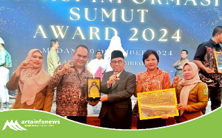 Penghargaan tersebut diberikan langsung oleh Penjabat (Pj) Gubernur Sumatera Utara Agus Fatoni kepada Bupati Simalungun diwakili Kadis Kominfo Simalungun Andri Rahadian.
