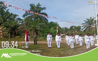 Simalungun-artainfonews.com-Menjelang peringatan Hari Ulang Tahun (HUT) Kemerdekaan Republik Indonesia ke-80, Babinsa Koramil 06/Perdagangan mewakili Danramil, Serma Sutrisno, bersama dua personel, menghadiri acara Pengukuhan Anggota Paskibraka tingkat Kecamatan Bandar Masilam. Kegiatan berlangsung di Lapangan Kantor Camat Bandar, Kabupaten Simalungun, Jumat (15/8/2025).