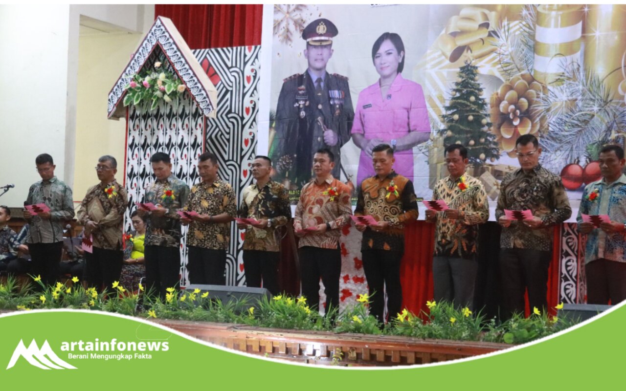 Pematangsiantar Sumut- artainfonews.com-Keluarga Besar Polres Simalungun merayakan Natal Tahun 2023 dengan penuh kesyukuran dan harapan pada Selasa, 12 Desember 2023, di Balai Bolon GKPS, Jalan Pendeta J. Wismar Saragih, Kecamatan Siantar Martoba, Pematangsiantar. Acara yang dimulai pada pukul 17.30 WIB ini dihadiri oleh Kapolres Simalungun AKBP Ronald F.C Sipayung, S.H., S.I.K., M.H., bersama dengan 950 peserta yang terdiri dari perwira dan anggota Polres beserta keluarga mereka.