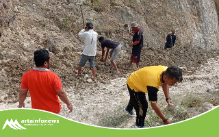 Kegiatan gotong royong diawali dengan pembuatan saluran air, meratakan tumpukan longsoran tanah, dan membangun tembok penahan tebing tanah. Setelah membuat saluran air, dilakukan penahan tanah tebing yang terbuat dari bambu untuk mencegah longsor yang dapat menutup akses jalan.