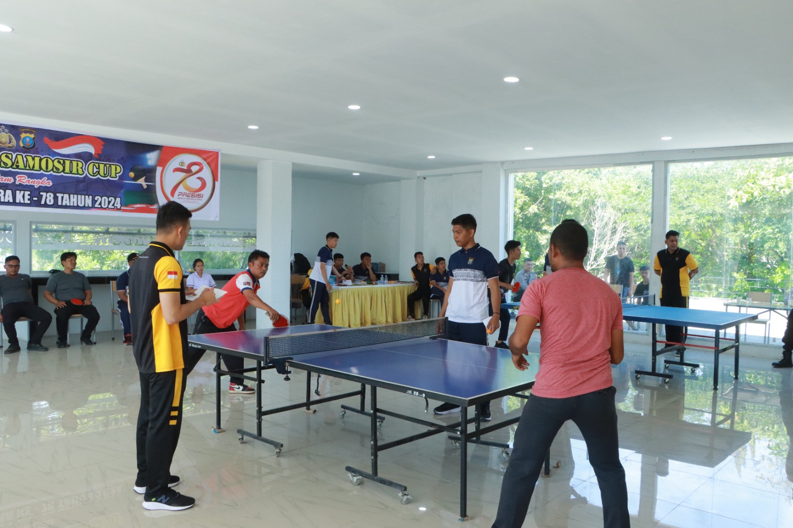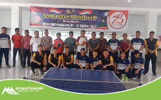 Samosir Sumut-artainfonews.com-Pertandingan Tenis Meja Kapolres Samosir Cup, yang diselenggarakan dalam rangka memeriahkan Hari Bhayangkara ke-78, berlangsung dengan sukses dan aman di Aula Gedung Perpustakaan Pemerintah Kabupaten Samosir. Kegiatan ini dilaksanakan selama satu hari dan diikuti oleh 16 peserta yang terdiri dari personel Polres, instansi pemerintah dan perwakilan dari sembilan kecamatan se Kabupaten Samosir. (19/06/2024)