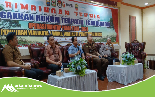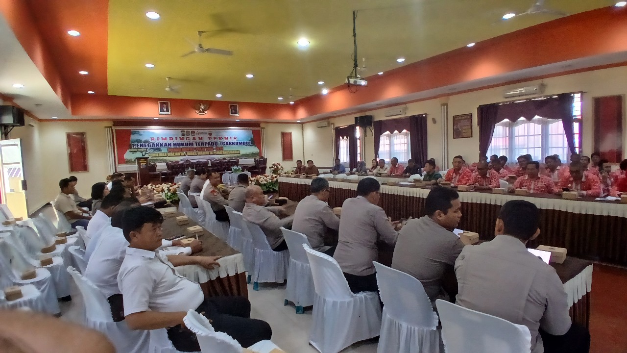 Pematangsiantar(Sumut)-artainfonews.com-Wakapolres Pematangsiantar AKBP Ahmad Wahyudi mewakili Kapolres melaksanakan kegiatan Bimbingan Teknis (Bimtek) Penegakan Hukum Terpadu (Gakkumdu) Pemilihan Walikota/wakil Walikota Pematangsiantar dalam rangka Operasi Mantap Praja Toba Tahun 2024.