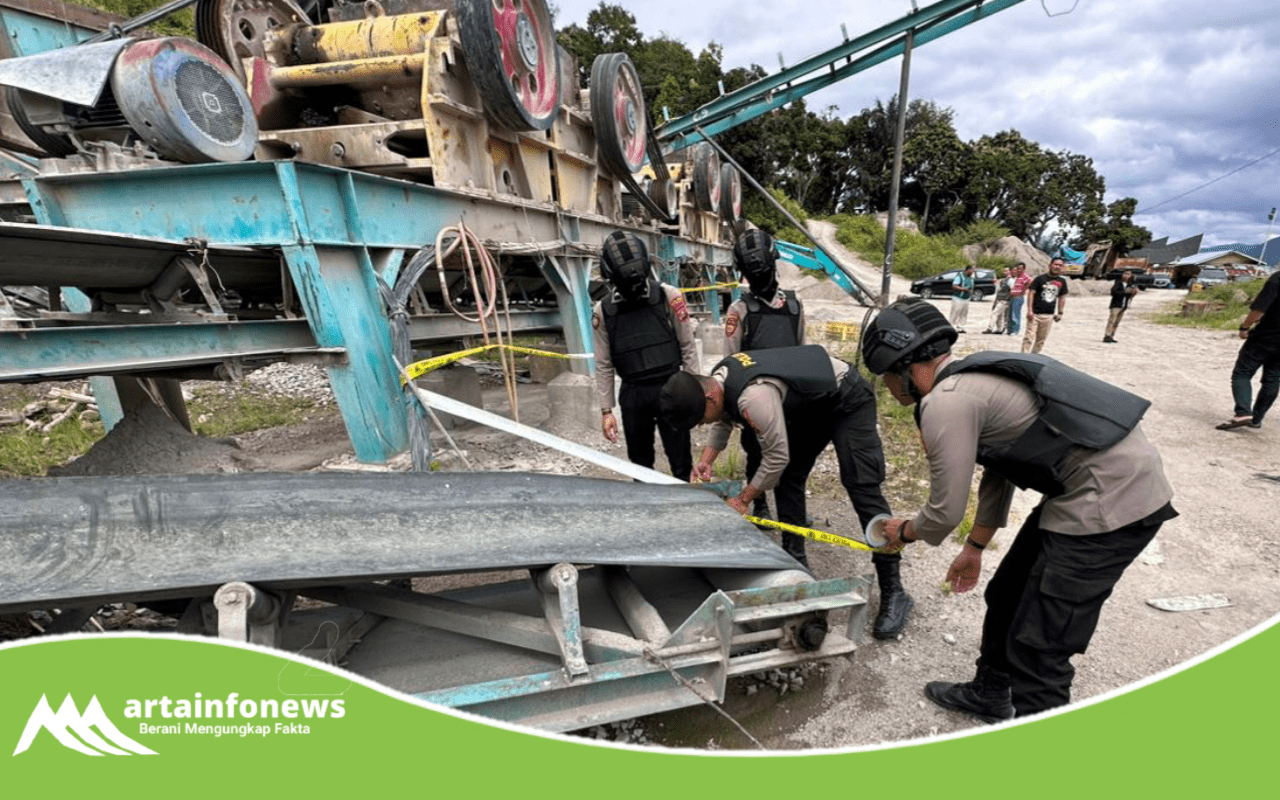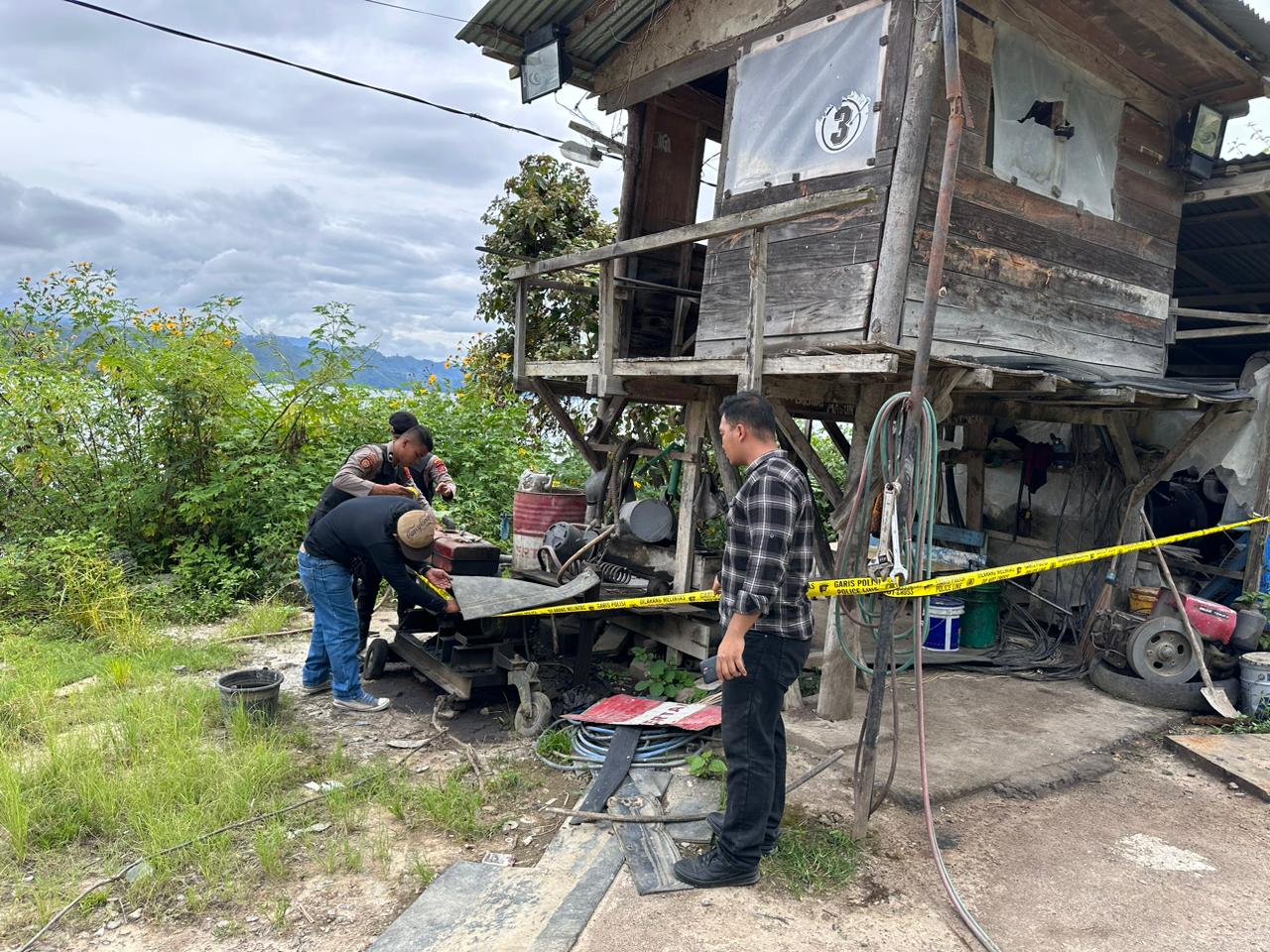 Personil juga mengamankan 2 orang Karyawan penjaga mesin pemecah batu yang ditemukan di lokasi dengan inisial MG (39) Dan BS (33).