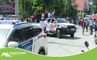 Sekitar pukul 10.00 WIB, rombongan yang terdiri dari simpatisan dan pasangan calon berangkat secara beriringan menuju Kantor KPU Kabupaten Samosir dengan pengawalan dari personil Sat Lantas Polres Samosir.