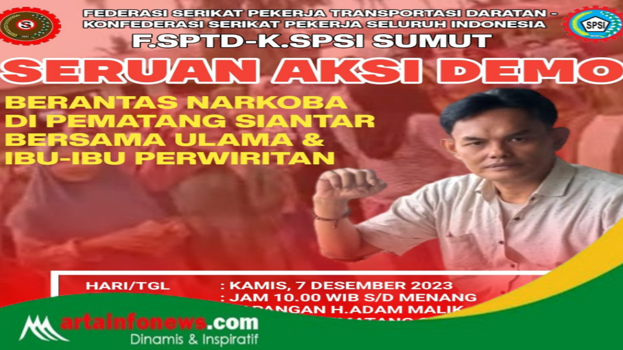 Pematangsiantar Sumut-artaingonews.com -Ratusan buruh yang tergabung dalam organisasi Federasi Serikat Pekerja Transportasi Daratan – Konfederasi Serikat Pekerja Seluruh Indonesia Sumatera Utara beserta ulama dan Ibu-ibu perwiritan rencananya akan menggelar aksi demo ke Mapolres Pematang Siantar dan Kawasan bangsal yang terletak di Jalan Wahidin Belakang Pasar Horas, Kelurahan Melayu, Kecamatan Siantar Utara, Kota Pematang Siantar.