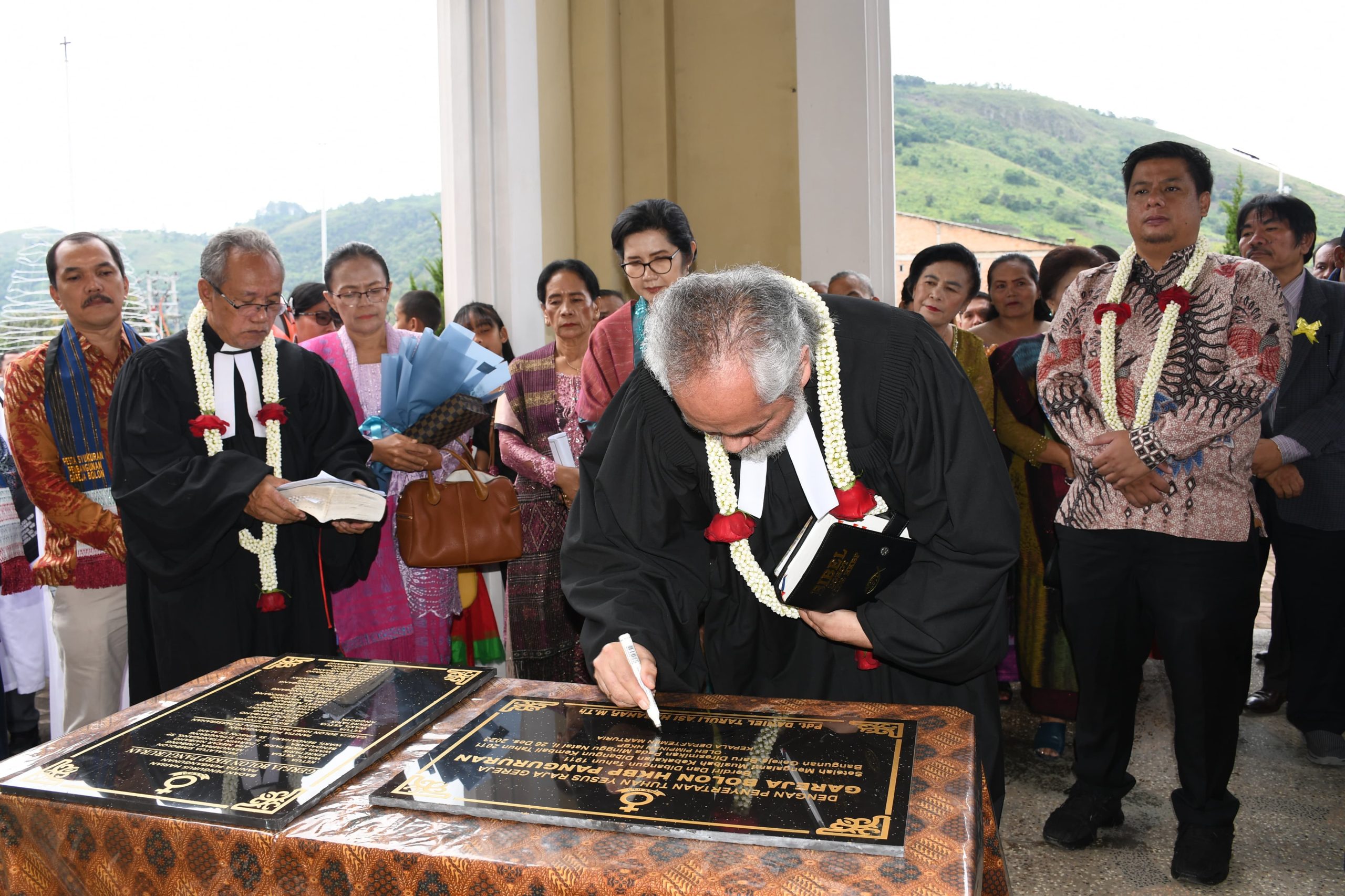 Turut hadir Anggota DPR RI, Lamhot Sinaga, Anggota DPRD Kabupaten Samosir, Nasib Simbolon, Polma Gurning, Parluhutan Sinaga, Forkopimda Kab. Samosir, Praeses Distrik VII Samosir, Pdt. Rein Justin Gultom, Pendeta Resort HKBP Pangururan, Pdt. Frans Vevo Hutajulu, Camat Pangururan, Robintang Naibaho dan Guru Huria Fulltimer serta Jemaat Gereja Bolon.