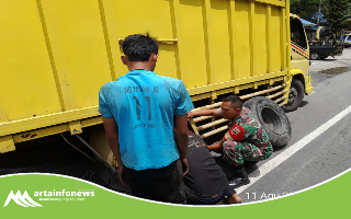 Kejadian tersebut berlangsung di salah satu titik jalan, ketika seorang warga mengalami kendala ban pecah dan kesulitan memperbaikinya. Melihat situasi itu, Sertu Hendri segera menghampiri dan memberikan bantuan hingga ban terpasang kembali dengan baik.