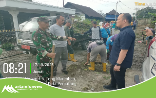 Pematangsiantar-artaingonews.com-Wujud nyata kemanunggalan TNI dengan rakyat kembali ditunjukkan oleh Danramil 03/Siantar Selatan, Kodim 0207/Simalungun, Kapten Inf Sugiharto. Bersama dua orang Babinsa, beliau memimpin langsung kegiatan gotong royong yang digelar di Gang Banjarnahor, Kelurahan Tong Marimbun, Kecamatan Siantar Marimbun, Kota Pematang Siantar, pada Jumat pagi (17/10).