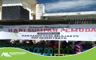 Simalungun(Sumut)-artainfonews.com-SMP N 1 Kecamatan Raya, Kabupaten Simalungun, merayakan hari peringatan Sumpah Pemuda 28 Oktober di Lapangan sekolah SMP N 1 Raya, Senin (28/10/24)
