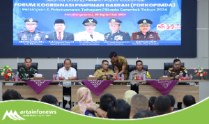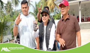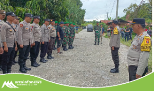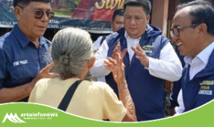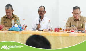 Simalungun(Sumut)-artainfonews.com-Bupati Simalungun Anton Achmad Saragih di dampingi Wakil Bupati Benny Gusman Sinaga dan Kepala Pelaksana Badan Penanggulangan Bencana Daerah (Kalak BPBD) Resman Saragih meninjau jembatan putus di Nagori Dolok Hataran Kecamatan Siantar, Simalungun, Sumut, Rabu (9/4/2025).