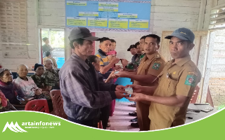 Simalungun-artainfonews.com-Guna memastikan penyaluran Bantuan Langsung Tunai (BLT) Dana Desa Tahun Anggaran 2025 berjalan lancar dan tepat sasaran, Babinsa Koramil 14/Raya Kodim 0207/Simalungun, Serda Benny P. Marpaung, turun langsung mendampingi kegiatan penyaluran BLT tahap pertama untuk bulan Januari hingga Maret di Nagori Silouhuluan, Kecamatan Raya, Kabupaten Simalungun.(30/6/25)