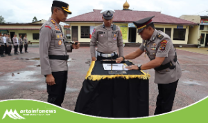 Samosir(Sumut)-artainfonews.com-Kapolres Samosir AKBP Yogie Hardiman, S.H., M.H memimpin upacara kenaikan pangkat pengabdian dari Kompol menjadi AKBP untuk Kabag Ren Polres Samosir, Kristian Sianturi, S.Sos., M.H., yang berlangsung di Lapangan Mako Polres Samosir Jalan Danau Toba Kecamatan Pangururan Kabupaten Samosir. Upacara ini merupakan bentuk penghargaan atas dedikasi dan loyalitas dalam pengabdian panjang di kepolisian.