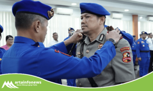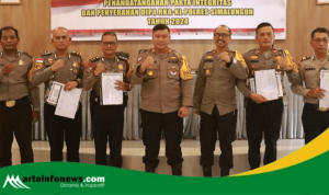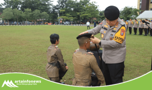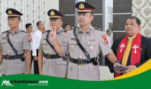 Samosir(Sumut)-artainfonews.com-Kapolres Samosir AKBP Yogie Hardiman, S.H., M.H memimpin upacara kenaikan pangkat pengabdian dari Kompol menjadi AKBP untuk Kabag Ren Polres Samosir, Kristian Sianturi, S.Sos., M.H., yang berlangsung di Lapangan Mako Polres Samosir Jalan Danau Toba Kecamatan Pangururan Kabupaten Samosir. Upacara ini merupakan bentuk penghargaan atas dedikasi dan loyalitas dalam pengabdian panjang di kepolisian.