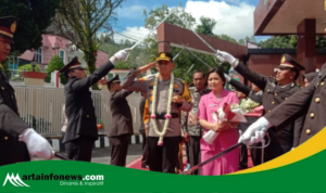 Samosir(Sumut)-artainfonews.com-Kapolres Samosir AKBP Yogie Hardiman, S.H., M.H memimpin upacara kenaikan pangkat pengabdian dari Kompol menjadi AKBP untuk Kabag Ren Polres Samosir, Kristian Sianturi, S.Sos., M.H., yang berlangsung di Lapangan Mako Polres Samosir Jalan Danau Toba Kecamatan Pangururan Kabupaten Samosir. Upacara ini merupakan bentuk penghargaan atas dedikasi dan loyalitas dalam pengabdian panjang di kepolisian.